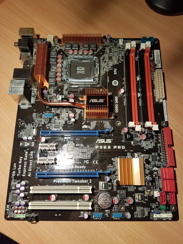 ✅ مادربرد ASUS P5E3 PRO DDR3 تستشده و سالم، همراه با پنل اصلی — آماده نصب برای پردازندههای سوکت LGA775 و پشتیبانی از رم DDR3.