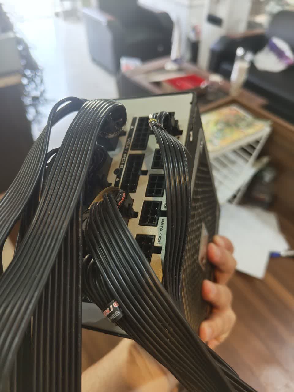 کابل هایی که داره : 24 پین + کابل های مربوط به سی پی یو / ساتا یک رشته شامل 4 تا خروجی / یک رشته شامل 4 عدد مولکس / pci e برای گرافیک 3 رشته شامل 6 خروجی
